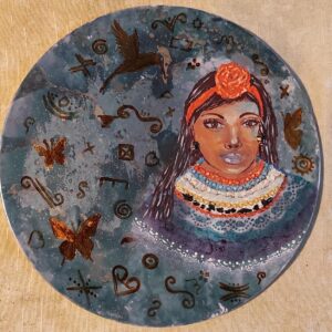 Plato de porcelana con mujer indigena