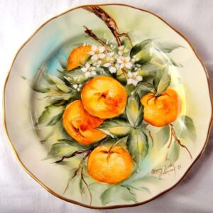 plato de porcelana con rama de mandarina